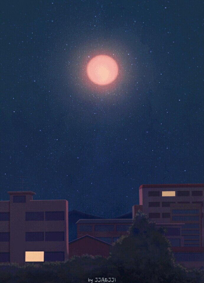 고층건물에 보름달이 반쯤 가려져 마치 달이 숨바꼭질을 하고 있는 것 같은 때면, 연노랑빛 반쪽은 너무나 소중하게 반짝반짝 빛난다.