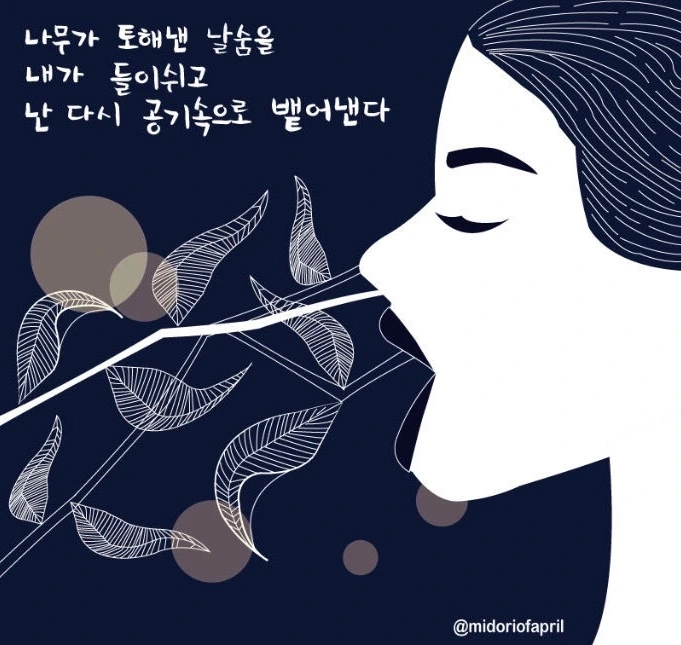 나무가 토해낸 날숨을 내가 들이쉬고, 난 다시 공기 속으로 뱉어낸다.