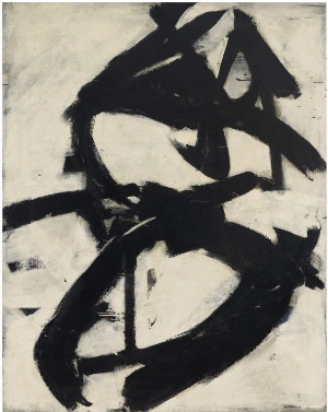 "그런데 자세히 보면 한 획으로 그어진 것 같지만 검은색 위에 흰색, 흰색 위에 검은색을 수정해 간 흔적도 살짝 보이네요. 이러한 표현은 아마도 서예의 '갈필'이 모티브가 되었을 거예요. 아마 그림을 그릴 때 어떤 이미지를 보면서 그려나가기는 했을 것 같습니다.“