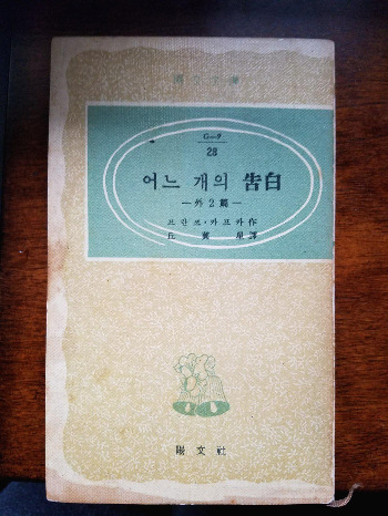 1959년 아니면 1960년의 명동에서 담배연기 뽀얀 다방 한 구석에 다리를 꼬고 앉아, 세로로 내려 찍힌 검은 문자의 흐름에 눈빛을 반짝거렸을 젊은 대학생을 떠올린다. 세월은 흘러가기 마련이고 오늘 그는, 어딘가 다른 하늘 아래에서 흰머리가 성성한 노년의 하루를 보내고 있을 것이다. 어떤 사연이 있었기에 그의 손을 떠나 나의 서재로 옮겨 온 것인지, 그리고 그는 아직도 젊은 시절의 손에 잡았던 프란쓰 카프카의 이 책, <<개의 고백>>을 기억하고 있는지 궁금해진다.