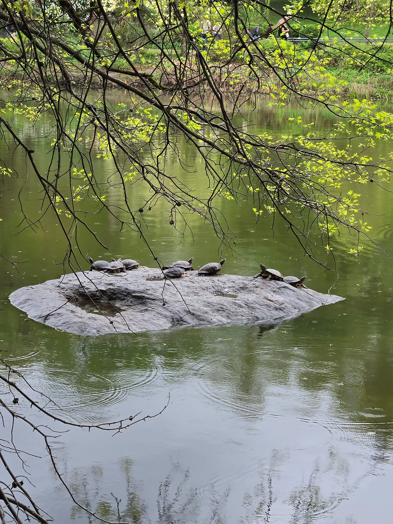 the lake의 외딴 바위섬에서 거북이들이 몸을 녹이고 있다. 봄날의 따스함이 저 놈들을 불러내었나 보다.