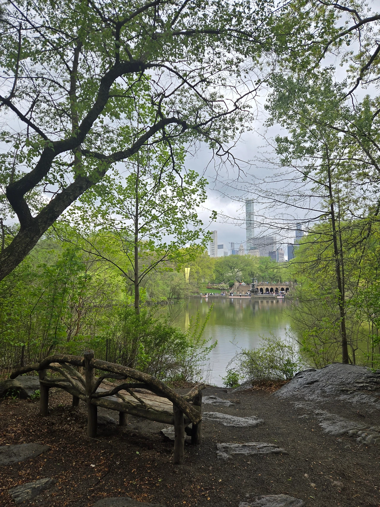 베데스다분수 건너편에서 The Lake을 바라보는 호숫가 벤치는 센트럴파크에서 가장 한적한 휴식처이다. 수면에서 튀어 오르는 빗방울이 맨해튼의 소음마저 삼켜버린다.