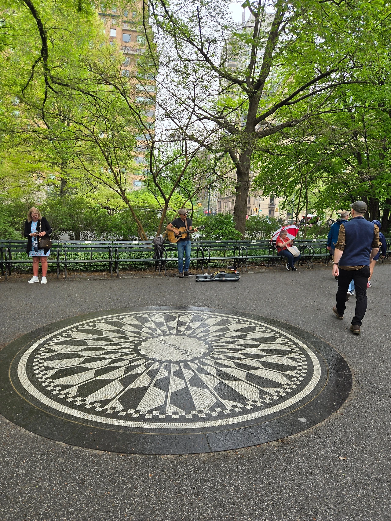 존레넌 추모공원, Strawberry field는 센트럴파크안의 park in park이다. 잠시 비가 그치자 거리의 악사가 image를 연주한다.