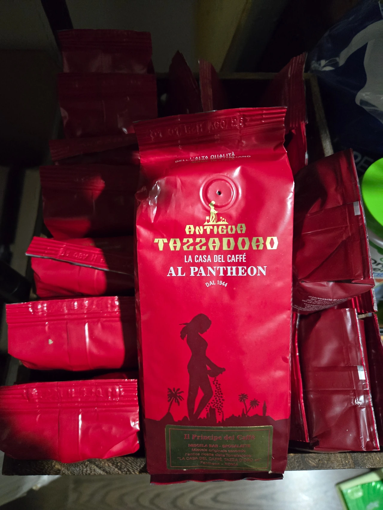 타짜 도로 원두커피 (Tazza Doro whole bean coffee)를 가득 채운 박스이다.