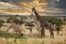 아프리카 초원을 거니는 기린 가족. 오른쪽은 나무에 기대어 눈을 감고 자는 기린 모습 (사진 출처: Getty image / animalwised.com)