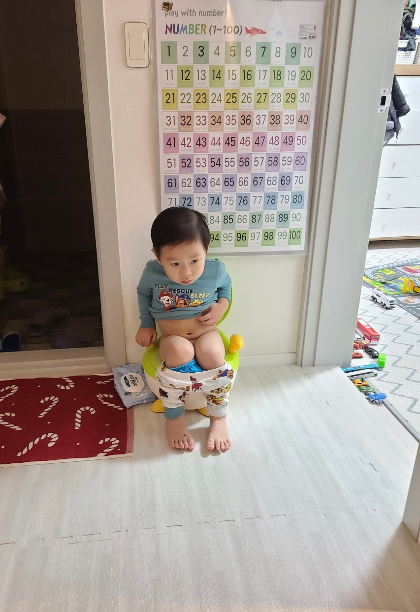 주아가 연두색 아동용 변기에 앉아 힘을 주고 있는 것이었다. 응가가 마려워 스스로 변기에 앉아 응가를 하는 모습에 아내는 놀랐다. 그동안은 응가가 마려우면 엄마, 아빠에게 도움을 청했는데 이번에 혼자 변기에 앉아 응가를 하고 있다. 아내는 정말 기분이 좋은가보다. 인상 쓰고 앉아있는 주아 앞에서 발을 동동 구르며 ‘주아야 너무 감동이다. 너무 멋있다. 최고다.’를 남발한다. 나는 좋아하는 아내를 보며 거봐 조금만 기다리면 되는 것을 왜 이리 보챘냐며 속으로 핀잔을 주면서도 스스로 응가를 하려는 주아의 의지에 미소가 멈추질 않았다.
