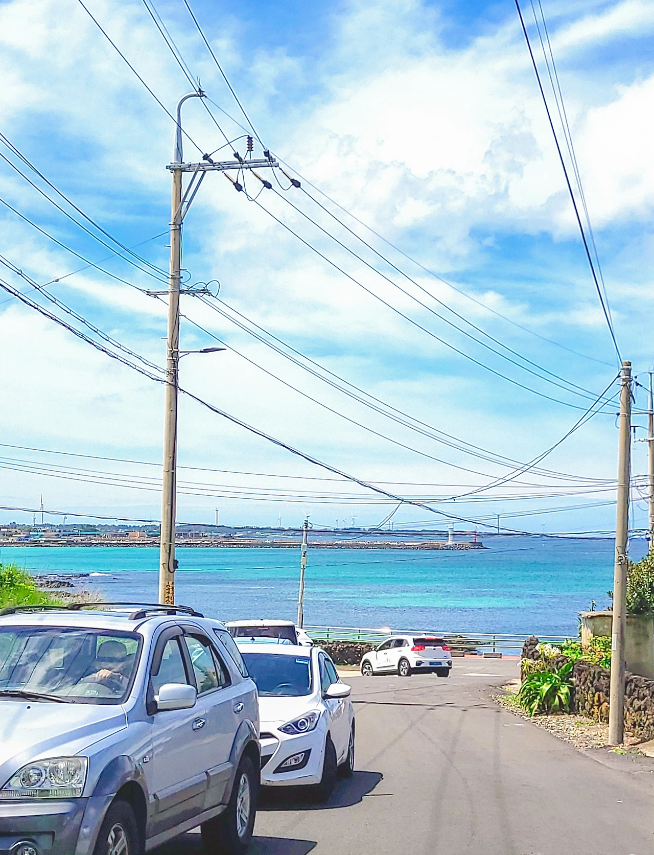 드라이브할 맛 나는 제주다. 창문을 열고 손을 뻗어보고 싶은 마음이 생긴다. 신호등도 많지 않고, 막히는 일도 거의 없다. 차를 타고 달릴 때마다 느껴지는 묘한 해방감. 슈퍼를 갈 때도 차를 타야 하는 불편함은 있지만, 그 불편함마저 이곳의 여유로움에 묻힌다.
