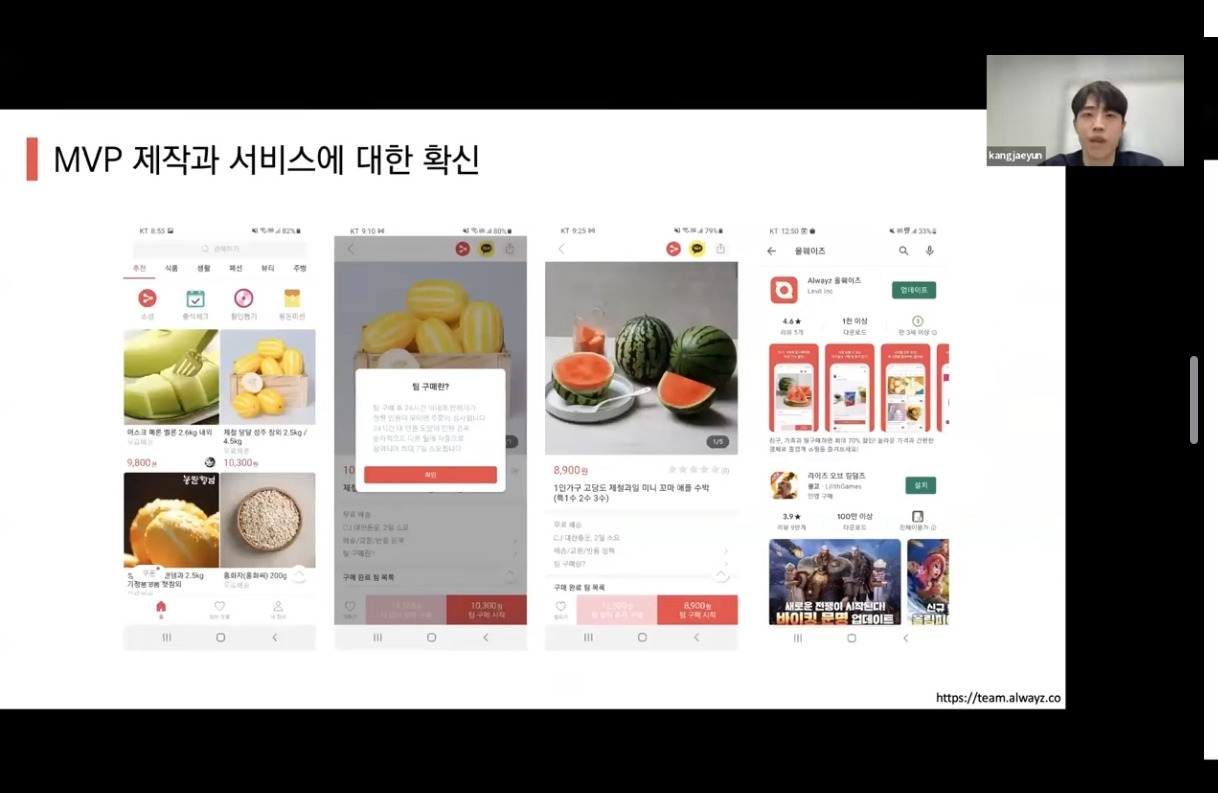 - MVP 에서 확인해야 할 것을 정의 : 유통구조 혁신을 통해 최저가 보장하면 고객이 구매할 것이다 만을 테스트할 수 있는 환경을 구성 ( 셀러 영입 없이)