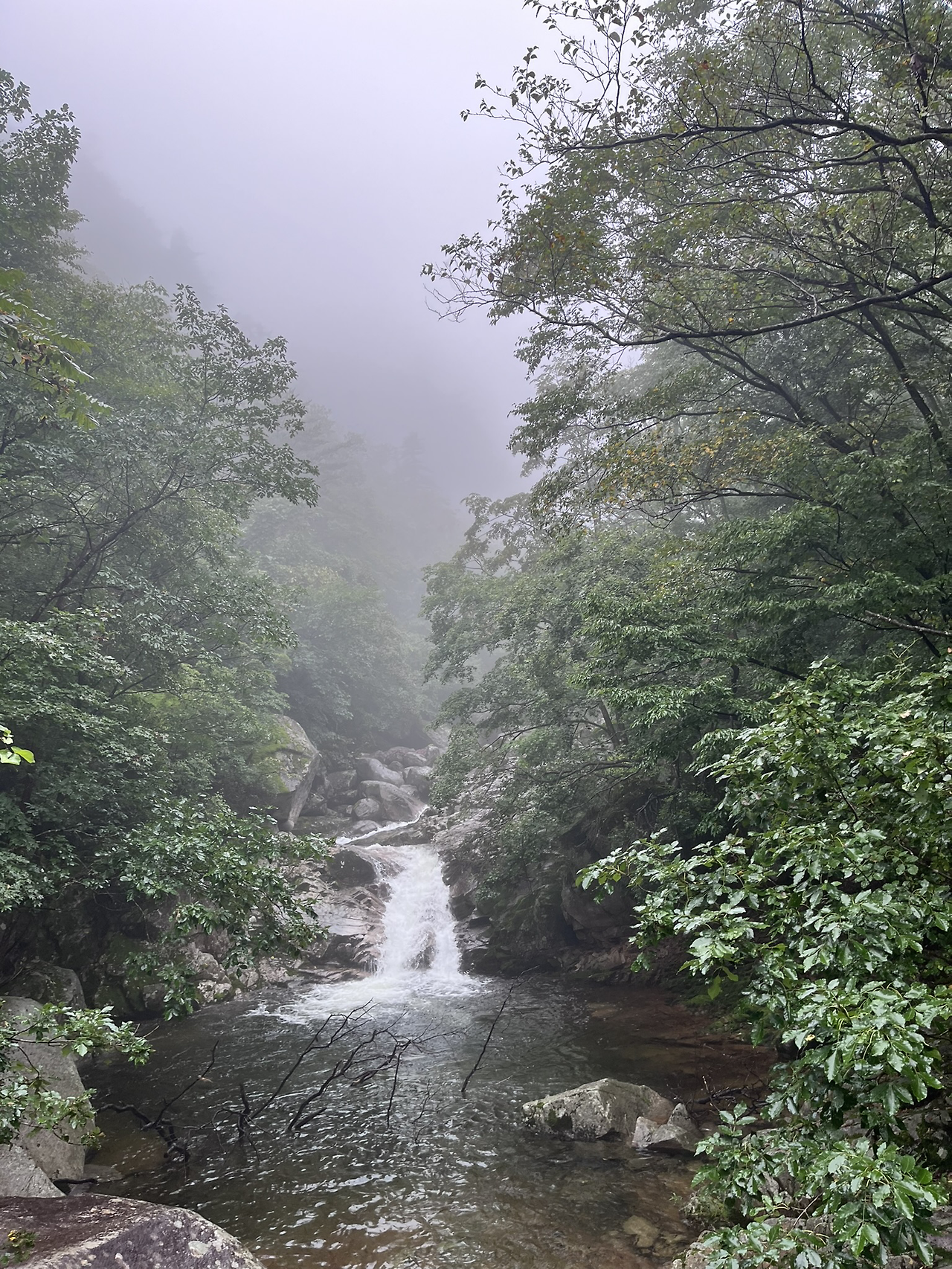 비는 점점 거세졌고 바람은 차가웠습니다. 늠름한 나무와 우거진 숲 아래에 머물며 잠시 비를 피해 몸을 웅크리고 있었습니다. 걱정도 잠시, 툭툭 내리는 빗소리, 수년간을 지탱해온 녹음의 기운, 그리고 진한 흙냄새가 무척이나 좋았습니다. 이게 바로 우중산행의 맛. 오늘 비 예보에 괜시리 마음이 설렜던 건 바로 이 때문이었습니다. 비가 오면 숲은 더 초록색을 띠고 흙은 자기 존재감을 더욱 내뿜습니다. 일정한 리듬감으로 내리는 빗소리를 들으면 그렇게 마음이 편안할 수가 없고요. 여기에 운무가 살짝 내려앉으면 게임 끝. 운무에 한치 앞도 보이지 않았지만 오히려 좋았습니다. 온전히 오감을 열어놓고 한 걸음 내딛으며 이 공간, 이 순간에 집중할 수 있거든요. 오늘도 역시 완벽한 우중산행이었습니다.