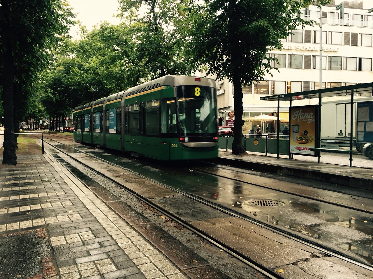 뭔가 행복해졌다. 비냄새, 나뭇잎에 떨어지는 빗소리, 트램소리 내 감성을 건드린 헬싱키의 비 오는 오전. 챙겨간 우산도 마침 고장나서 버려 버리고 나도 비를 맞으며 천천히 걸었다. 묘지의 스산함에 움츠러 들었던 나는 비에 적셔지는 헬싱키를 온몸으로 느꼈다.