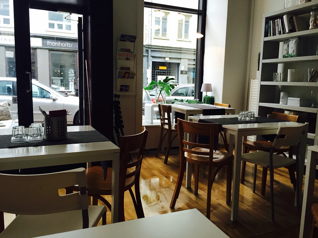 김동률과 정준일의 노래들을 들으며 걷고 걷다 낯선 길위에 서게 되었다. 어느 골목인지도 모른채 서있던 곳에서 마침 배가고파오던 찰나 한눈에 들어온 유니크하면서 꽃으로 멋스럽게 꾸민 PURO카페.창가에 앉아서 얘기나누며 브런치를 즐기는 이들을보니 뭔가 함께 하고 싶은 마음에 사로잡혔던 것 같다. 영어에 대한 걱정으로 망설이다 소심하게 들어가서 왠지 모를 눈치를 살피며 내부를 탐색했다. 넓지 않은 공간, 몇개의 테이블에 심플한 데코들. 역시나 북유럽스타일이 내맘에 쏙 들었다. 초코브라우니와 라떼를 시키며 어디앉을까 둘러보는데 동양인은 나 혼자뿐이였다. 뭔가 뿌듯한 이 마음은 뭘까 싶으면서 그들의 일상에 녹아든다는 생각에 살짝 설레였다. 음식을 기다리는 동안 그곳에서 키우는 시크한 강아지와 눈인사를 하고 사진도 찍어주고 혼자 신이 나있는데 직원이 추천해준 브라우니가 나왔다. 비주얼 부터 남다른 그 브라우니는 지금도 잊을수 없이 맛있었고 라떼 또한 너무 맛있어서 휘바휘바를 외치고 싶었다. 비오는 창밖과 째즈풍의 음악을 들으며 진하게 달달한 브라우니와 라떼 한잔에 (진정한 허세라고 할 수 있지만) 너무 행복했다. 직원이 입맛에 맞냐는 물음에 내가 굿굿굿을 외치니 웃으며 고맙다고 해줬다. 정말 별것 아닌 일상들로 보낸 하루가 나를 조금은 놓을수 있게 해주어 여행중의 피로를 잊을만큼 가장 편안했던 날이였다.