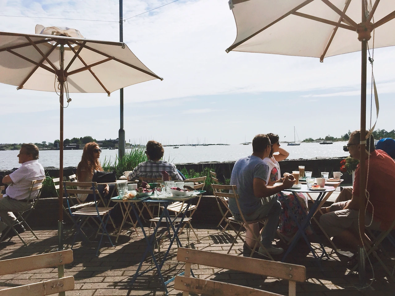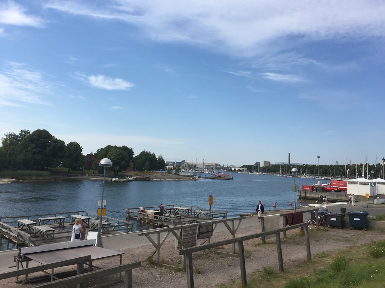 영화에서 주인공들이 앉았던 곳을 어렴풋이 기억하며 비슷한 곳을 찾아 앉았다. 광합성이 강하게 내리쬐는 벤치에 앉으니 시원하게 부는 바람이 이마를 때리기도 하고 바다위 반짝이는 빛에 눈도 제대로 못떴지만 어느 잡지인터뷰에서 이민호가 핀란드에 대한 느낌을 미지의 나라같다고 표현했었던 그 말 처럼 내게도 똑같은 느낌으로 다가왔다. 느리게 평온하고 모든 고민이 없어보인다고 해야할까? 마음의 풍요로움이 그대로 느껴졌다. 우리나라 강원도나 제주도 해변가 카페들과는 전혀 다르게 풍겨지는 분위기에 한참을 감탄했었다. 내가 가보고싶은 곳으로 가자고 배려해준 친구들도 너무 좋다며 그렇게 1시간 가량 앉아 사진도 찍고 짧은 수다를 떨며 온전히 여유를 만끽했다.