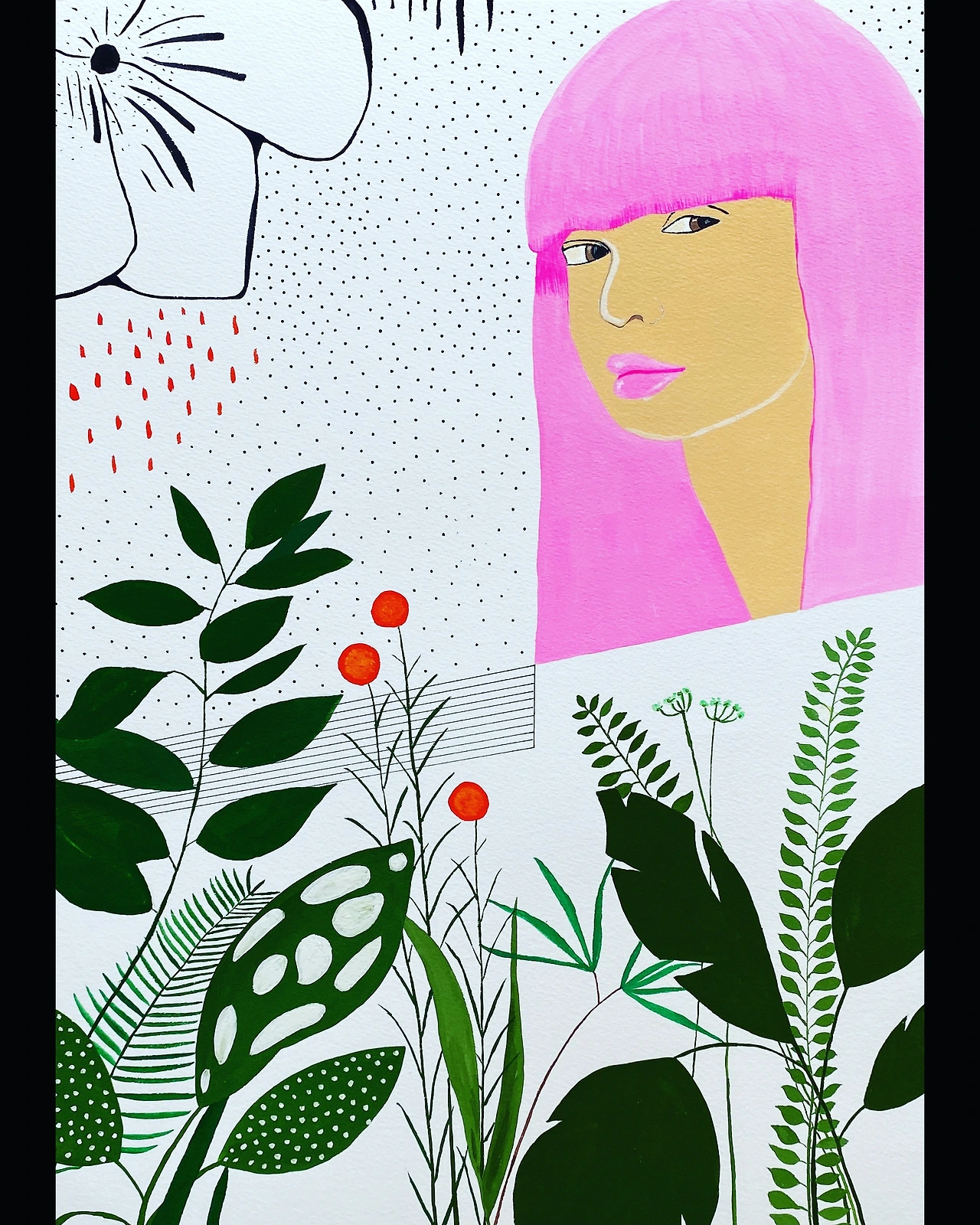 내가 꿈꾸는 자화상은 슬픔과 고난은 보이지 않았으면 한다. 가면 뒤에 숨기고 즐겁고 멋진 나를 보여주고 싶은 것이다. 하지만 결과물은 어딘지 모르게 슬퍼 보인다. 자신의 내면을 쉽게 숨길수 없나 보다.
