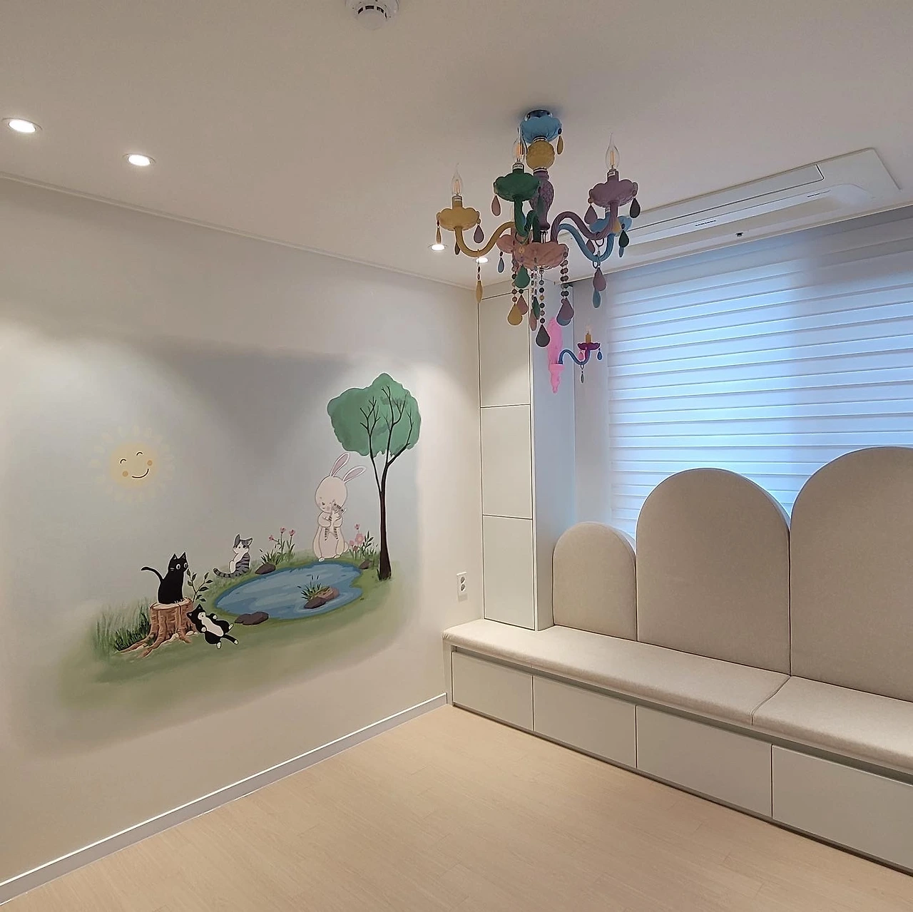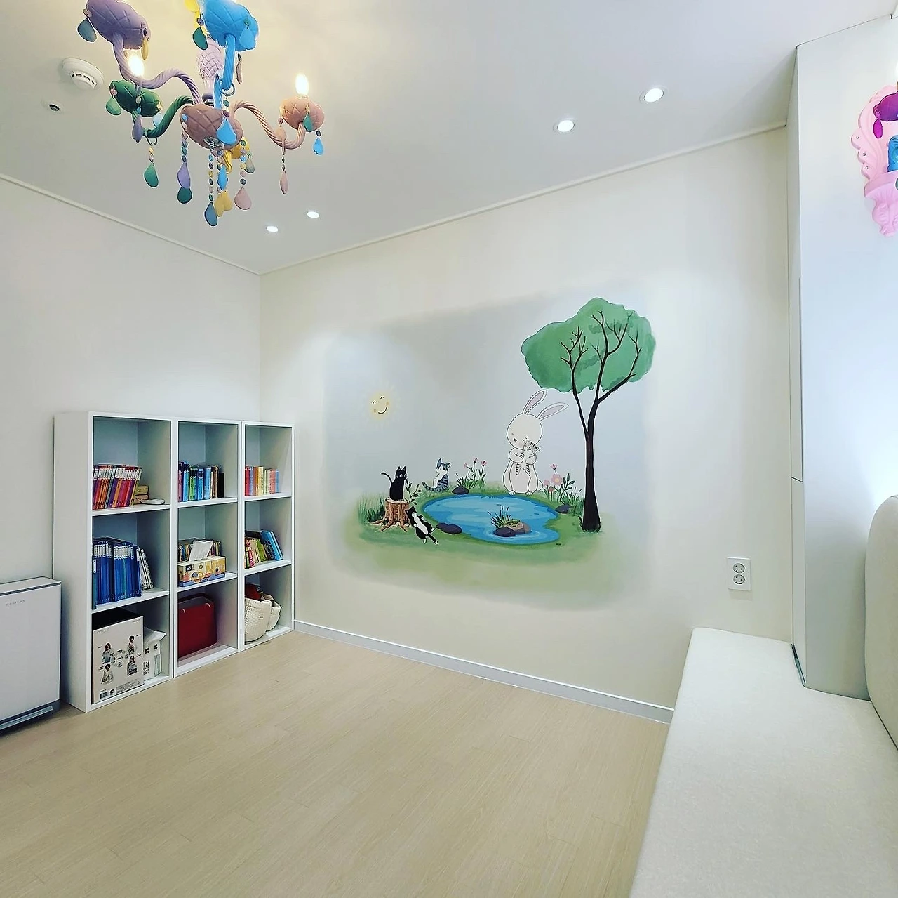 얼마 전 방 한 벽면에 그림을 그려달라는 의뢰가 들어왔다. 처음에는 할 수 있을 것 같았다. 하지만 캔버스가 아닌 벽지에 아크릴 페인팅 채색이 잘 될까? 내가 원하는 질감과 색표현이 가능할까? 의심스러워 여러 방면으로 조사를 했다. 여러 가지 장단점이 있었지만 벽지 위 아크릴 물감은 아무래도 한계가 있는 듯했다. 그래서 결국은 그림을 벽지에 인쇄하는 방법으로 진행하였다. 결과물은 의뢰자도 나도 만족스러웠다.