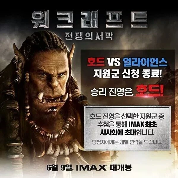 오죽하면 워크래프트-전장의서막 이 영화로 개봉 하였을 때 각 진영별로 관람객 수치를 측정하면 영화 관람객이 10배는 늘것이라는 꽤나 신빙성 있는 주장도 들려 왔다. 실제 관람객별로 진영을 나누지는 않았지만 게임의 컨셉을 시사회에 초대에 활용 하는 이벤트가 진행 되기도 하였다.