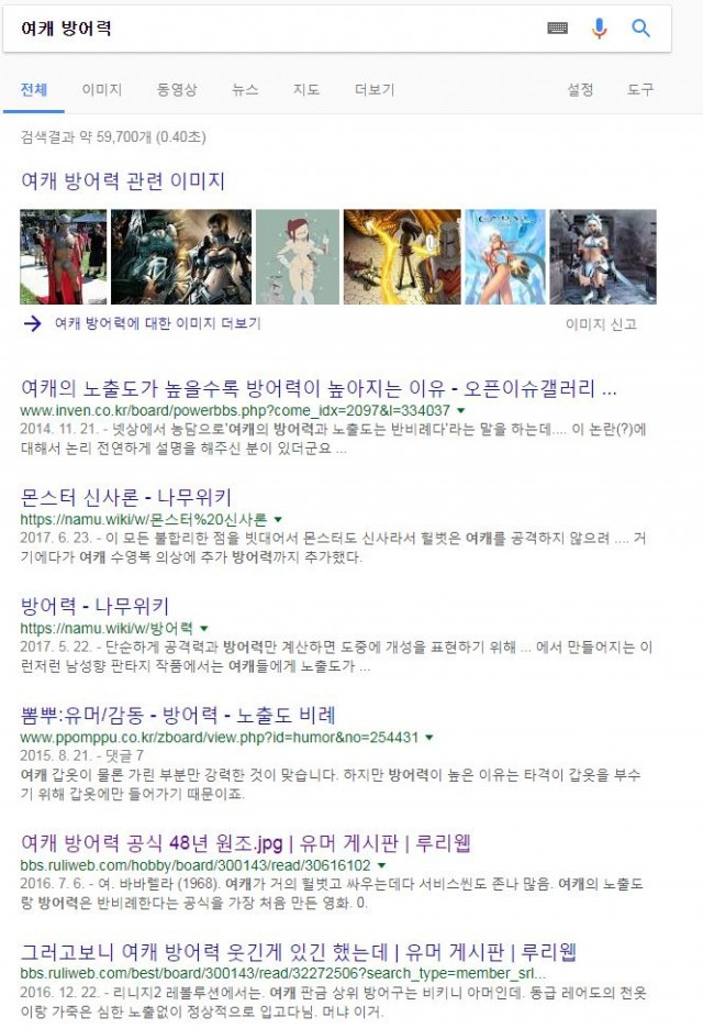 게임의 주 이용자는 남성이다. 그렇다 보니 성적 어필이 더 많은 관심과 흥미를 끄는 것도 사실이다. 하지만 ‘이렇게까지 해야 하나’라는 생각이 드는 설정들과 그것을 확대 재생산하는 과정은 정말 1도 유쾌하지 않다. 어느 정도야? 궁금하신 분은(뒤 조심) ‘여캐 방어력’ 만 검색해 봐도 알 수 있다. 사정이 이렇다 보니 여성 상품화를 넘어서 희화하거나 대상화하는 행동과 게시물에 대해서는 그냥 외면하고 사고를 정지시켜 버린다.