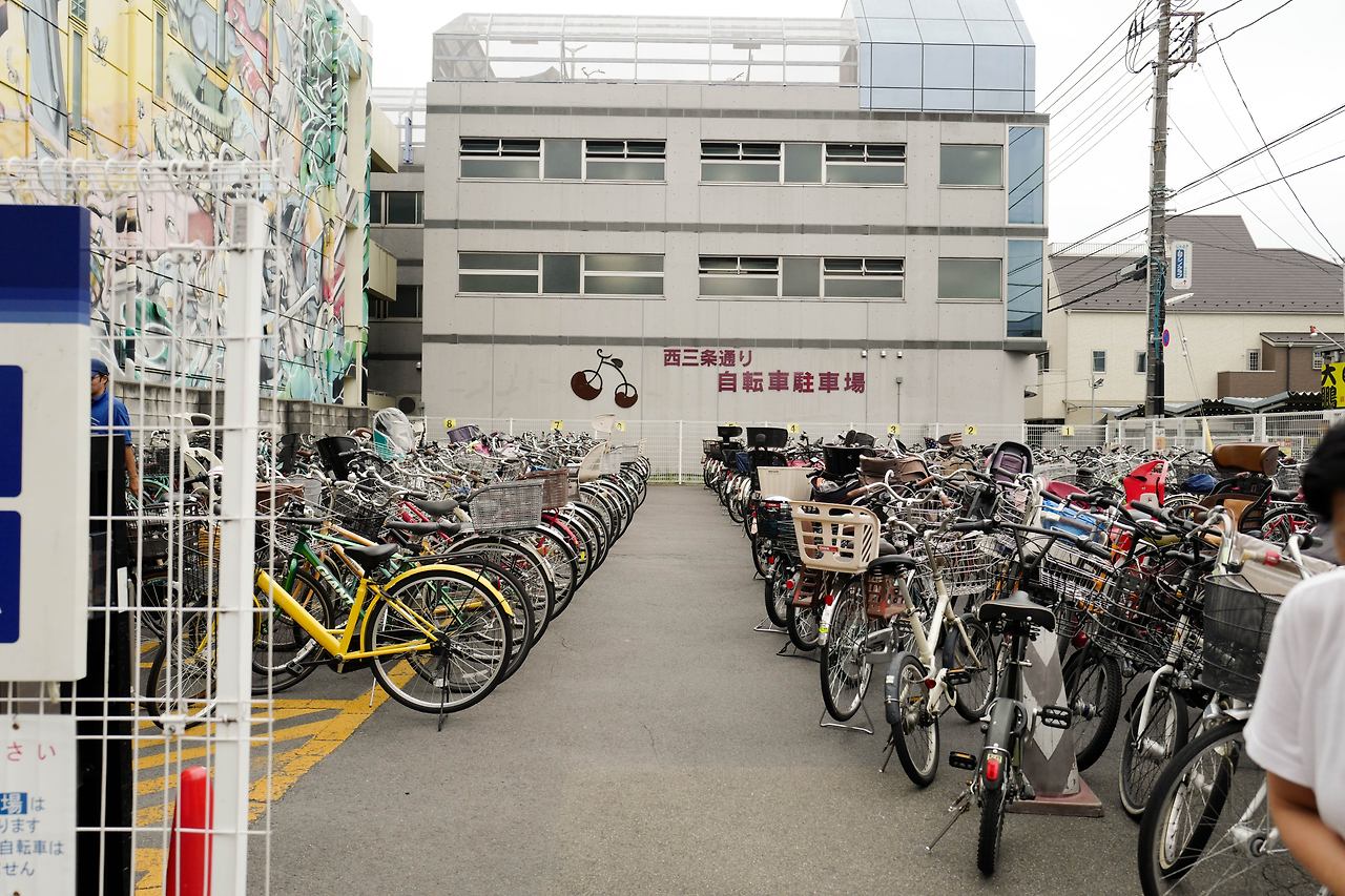 자전거 이열 주차가 몇 줄이나 더 있다.
