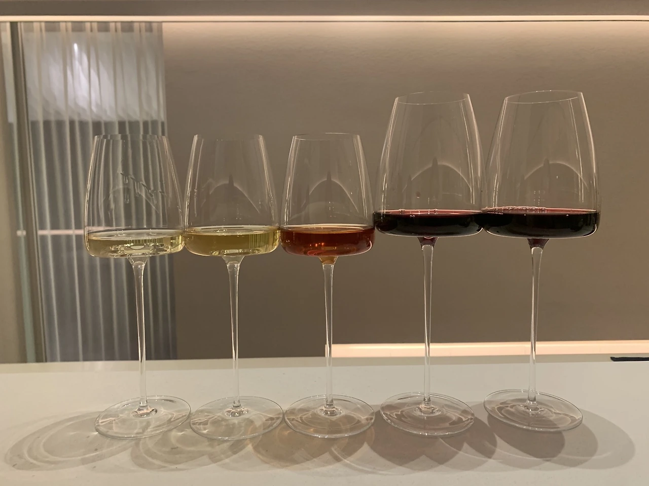 와인 플라이츠 Wine flights는 와인 테이스팅 코스라고 생각하시면 되는데요. 다양한 셀렉션의 와인을 테이스팅 할 수 있도록 글라스로 제공하는 걸 말합니다. 어떤 와인인지 메뉴판에 미리 설명해두고 고를 수 있게끔 하기도 하지만, 아예 어떤 와인인지 모르게 숨긴 상태의 블라인드 테스트로 제공하기도 합니다. 화이트 와인 코스, 레드 와인 코스처럼 고를 수 있게도 하고 화이트, 로제 , 레드 여러 가지를 골고루 섞은 플라이츠를 제공하는 경우도 있습니다.
