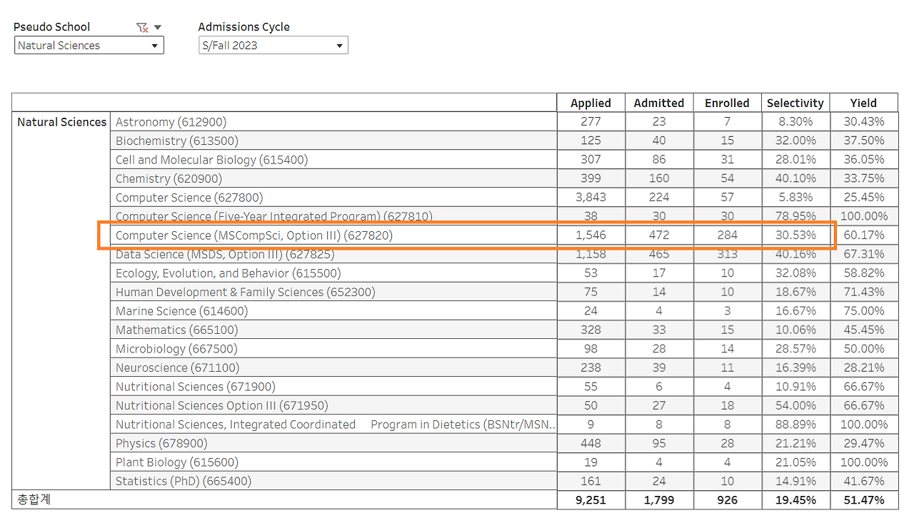 2) UT Austin에서 제공하는 공식 통계 자료는 아래와 같음