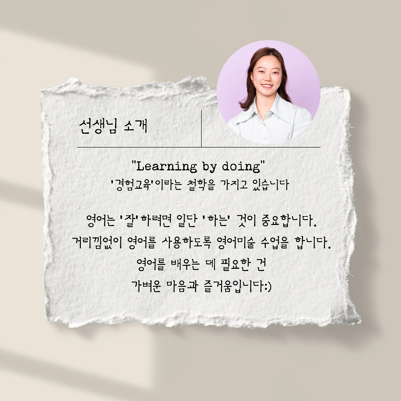 거리낌없이 영어를 사용하도록 영어미술 수업을 합니다.