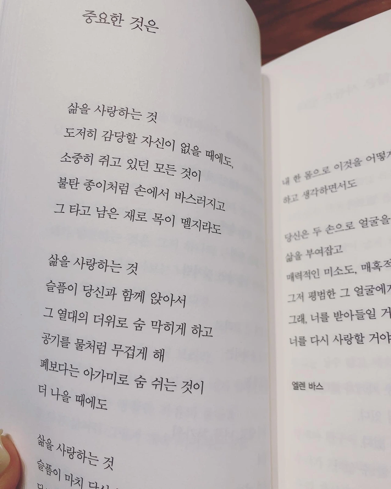 일요일 오후, 늦게 일어나 세탁기로 빨래를 하고 청소기로 방을 치우고 옷장에 걸린 여러 옷들 중에서 입고 싶은 옷을 꺼내 입고는 가방에는 아이패드와 아이폰 책 두 권과 텀블러를 챙긴 후 십 분 거리의 스타벅스에서 베이글과 밀크티를 마시며 시를 읽고 있는 반면 이 지구의 누군가는 충분히 잠을 자지도 먹지도 못한 채 노동을 하거나 두려움에 떨고 있다. 세탁기와 청소기는커녕 마실 물도 음식도 입을 옷도 충분하지 않거나 없을 수도 있다. 학교는커녕 총을 들고 있을 수도 폭력으로 죽어가고 있을 수도 있다.