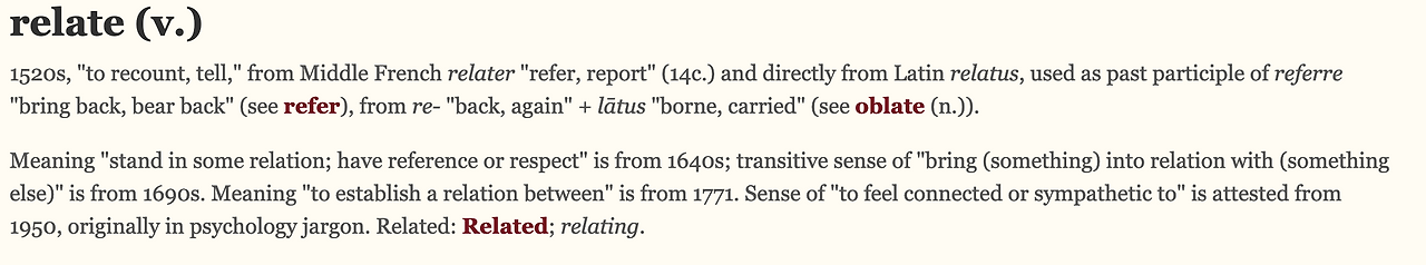 여기에서 "그냥 'relate'의 정의만 보면 되지, 왜 어원(etymology)까지 봐야 해?라고 물을 수 있다.