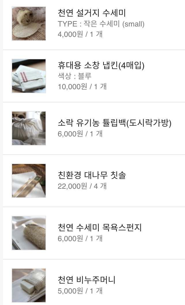판매 제품들 모두 사용 후 그대로 자연으로 돌아갈 수 있는 소재들로 만들어집니다.