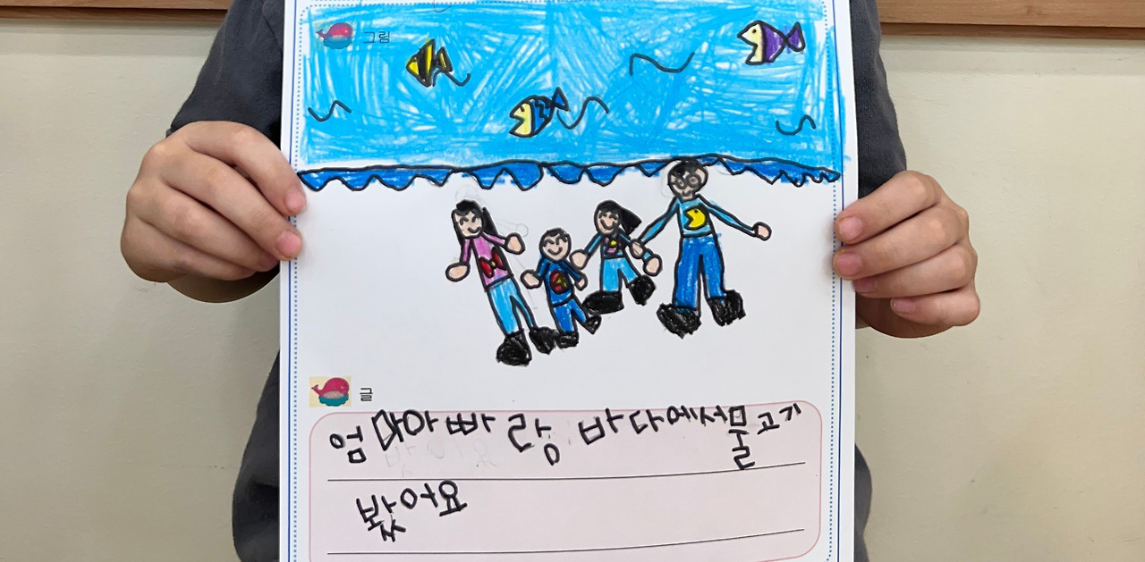 “엄마 아빠랑 바다에서 물고기 봤어요."