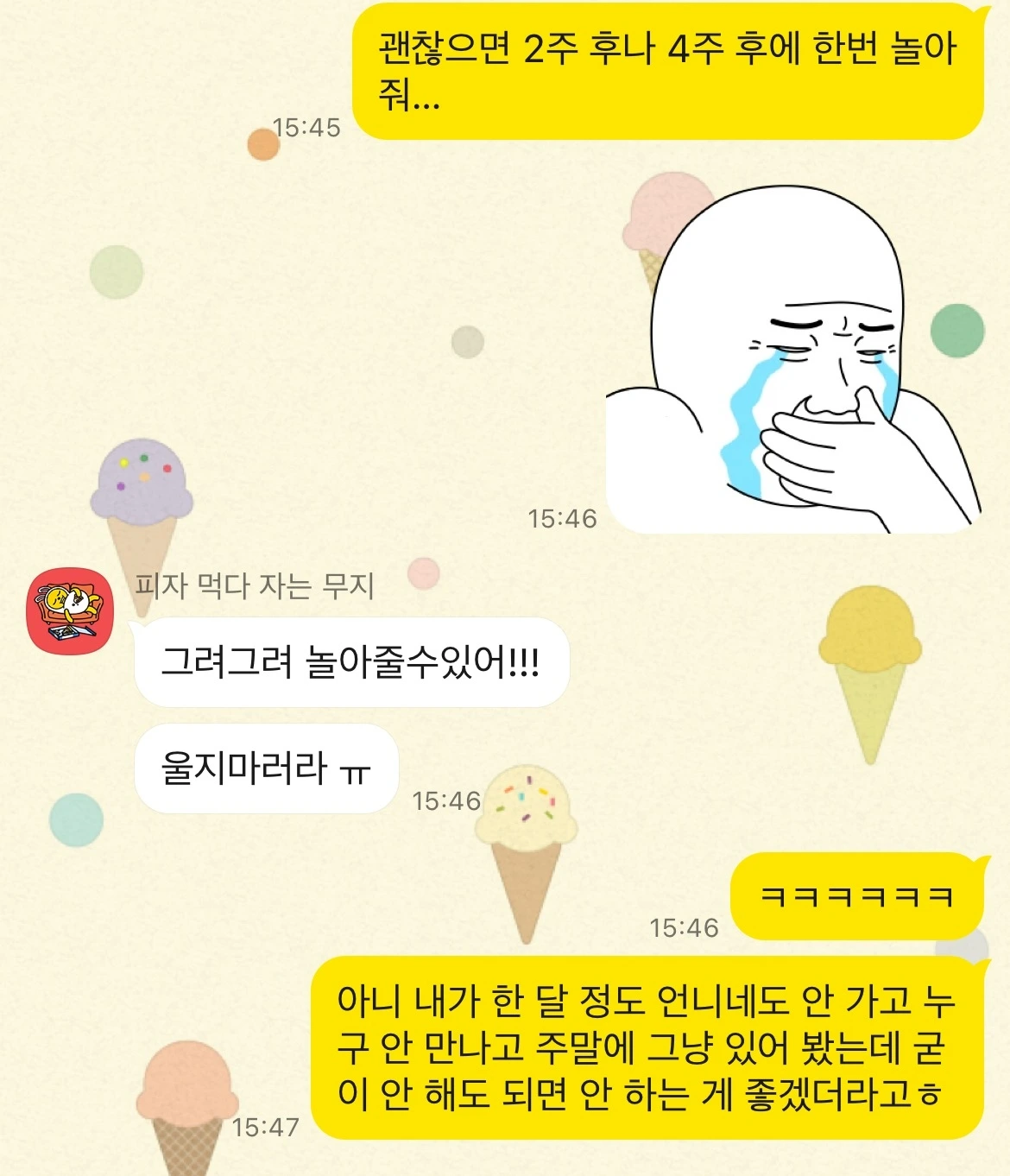 그런데 아이들을 아빠집에 보낸 후 혼자 넷플릭스나 밀리의 서재를 틀어놓고 온종일 있다 보니 너무 무기력해졌다. 친구가 일하는 카페에도 가다가 괜히 청승 떨지 말자며 병원에 가서 다시 약을 처방받아 먹었고, 애들 없을 때면 언니네 집에 가서 지내는 주말이 몇 번 이어졌다. 헬스장에서 갑자기 눈물이 쏟아졌던 날도 이쯤이었다.