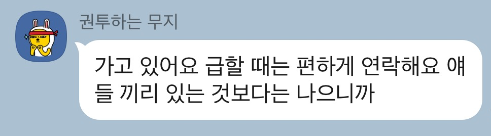 애들 데리고 있겠다고, 태권도 언제 끝나는지 알려주면 집으로 데려와서 밥도 챙기겠다고 했다.