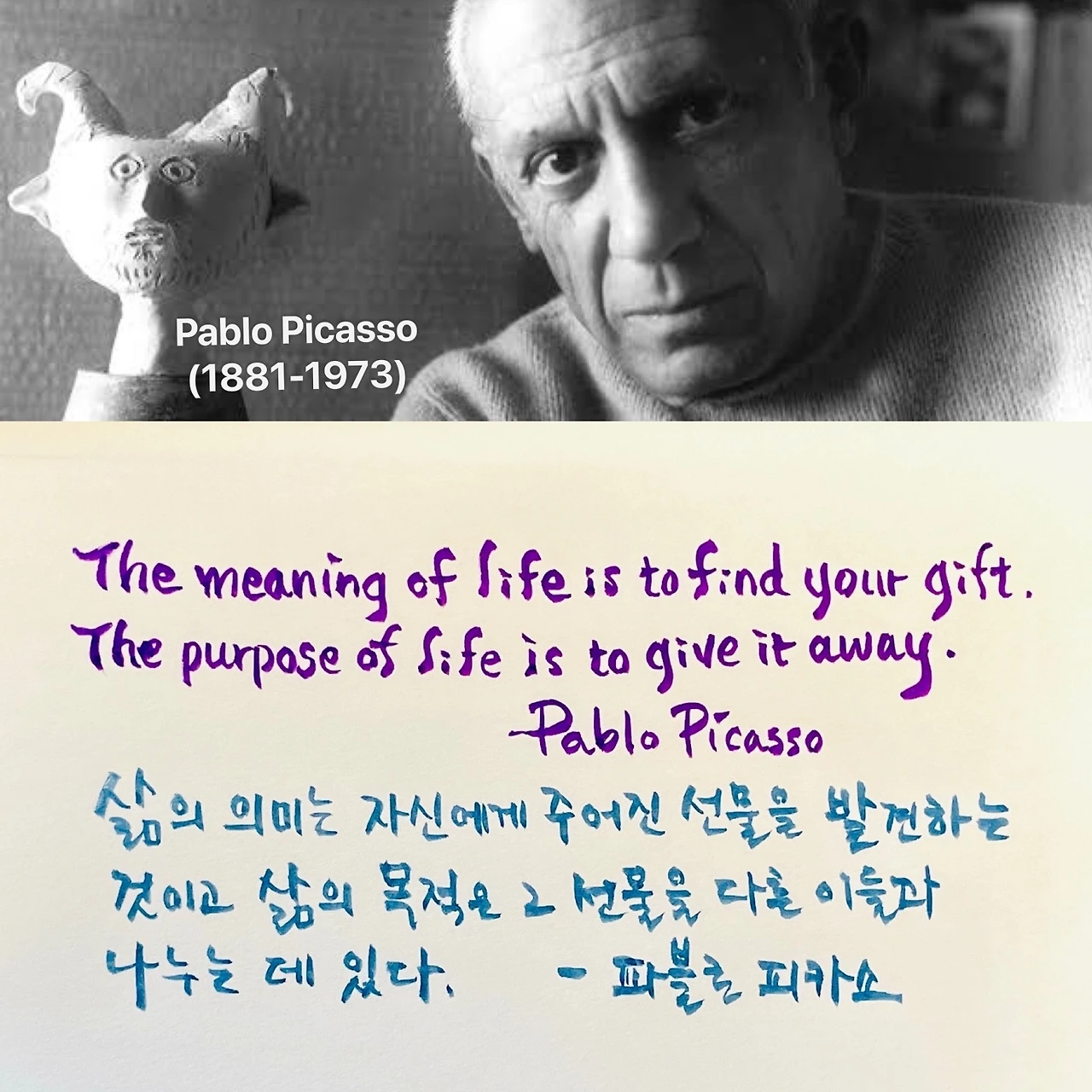 The meaning of life is to find your gift. The purpose of life is to give it away. -Pablo Picasso