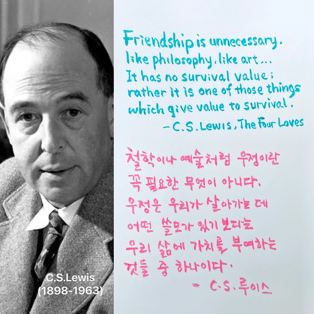 “Friendship is unnecessary, like philosophy, like art.... It has no survival value; rather it is one of those things which give value to survival.”