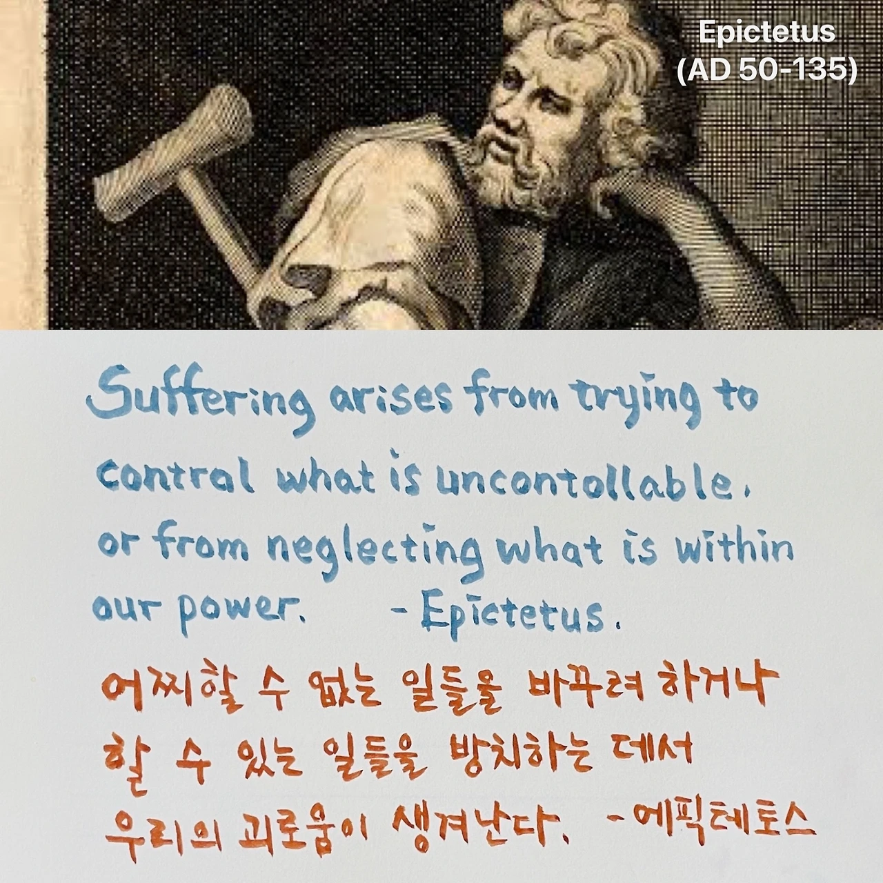 Suffering arises from trying to control what is uncontrollable, or from neglecting what is within our power. - Epictetus