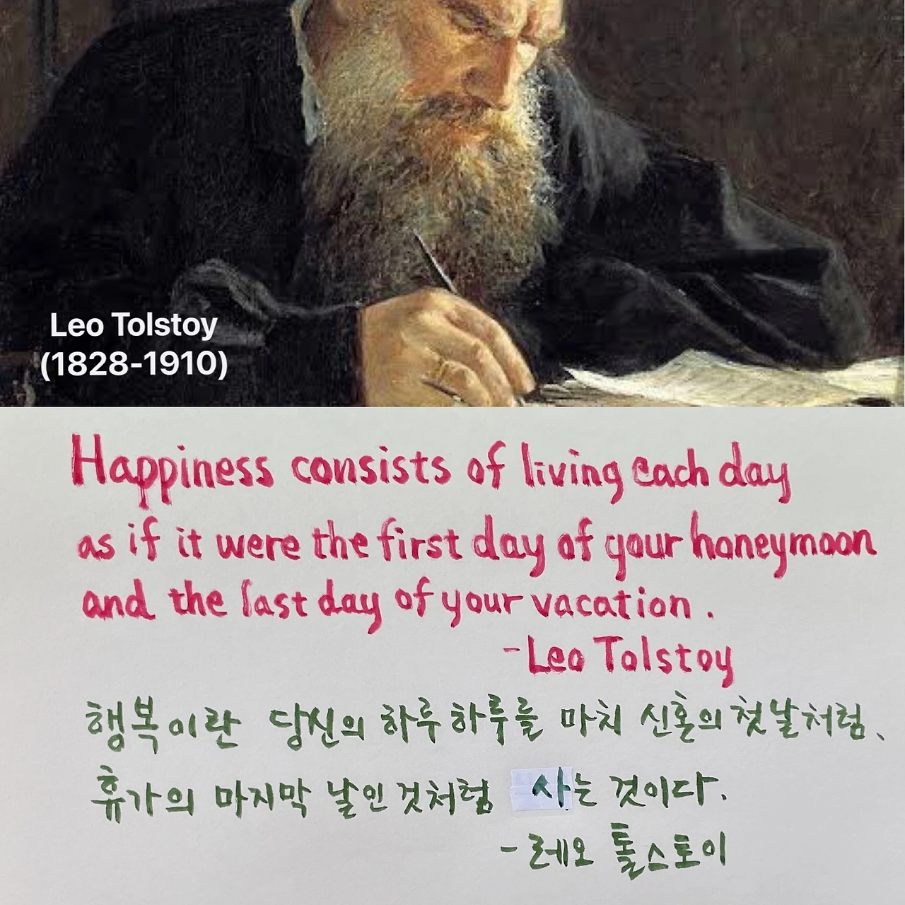 Happiness consists of living each day as if it were the first day of your honeymoon and the last day of your vacation. - Leo Tolstoy