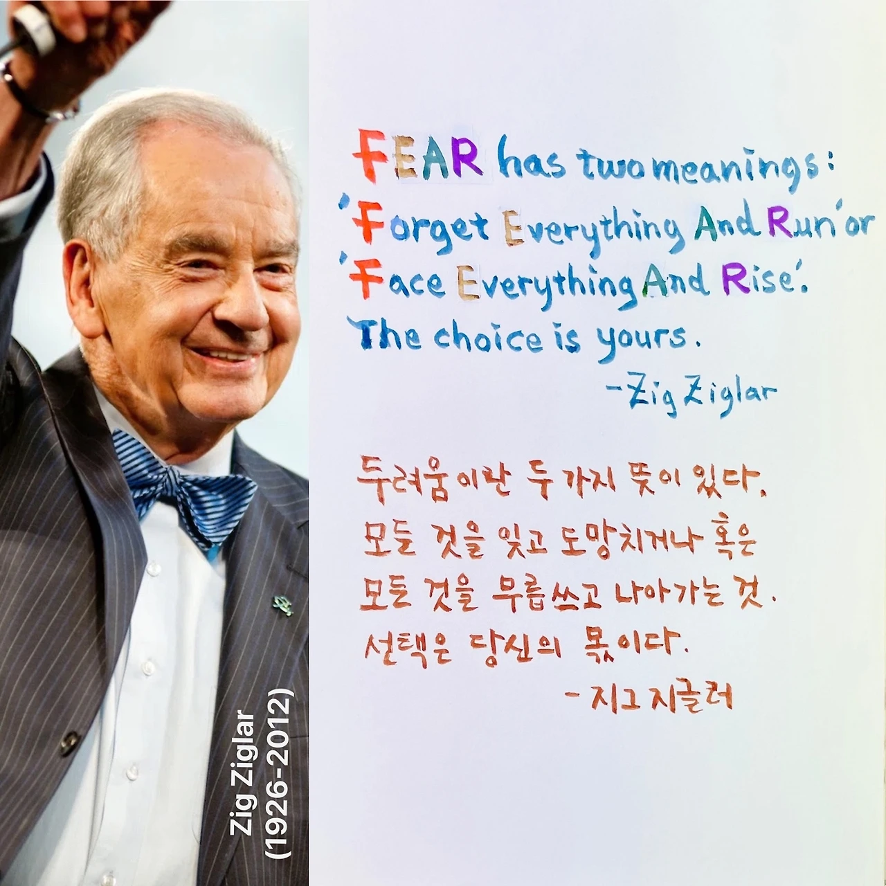 F-E-A-R has two meanings: 'Forget Everything And Run' or 'Face Everything And Rise.' The choice is yours. - Zig Ziglar