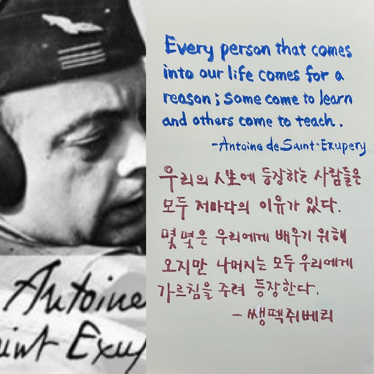 Every person that comes into our life comes for a reason; some come to learn and others come to teach. - Antoine de Saint-Exupery