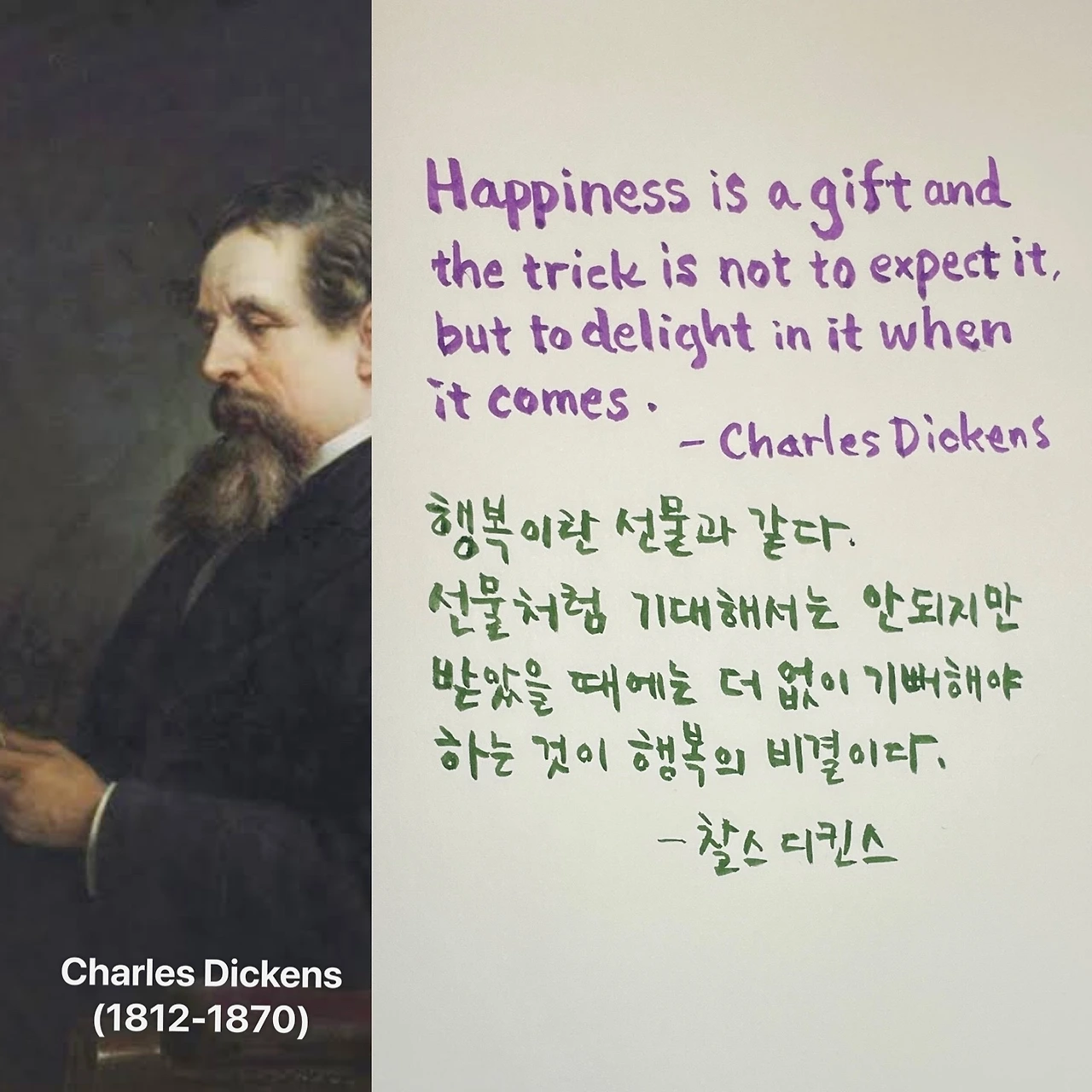 Happiness is a gift and the trick is not to expect it, but to delight in it when it comes. - Charles Dickens
