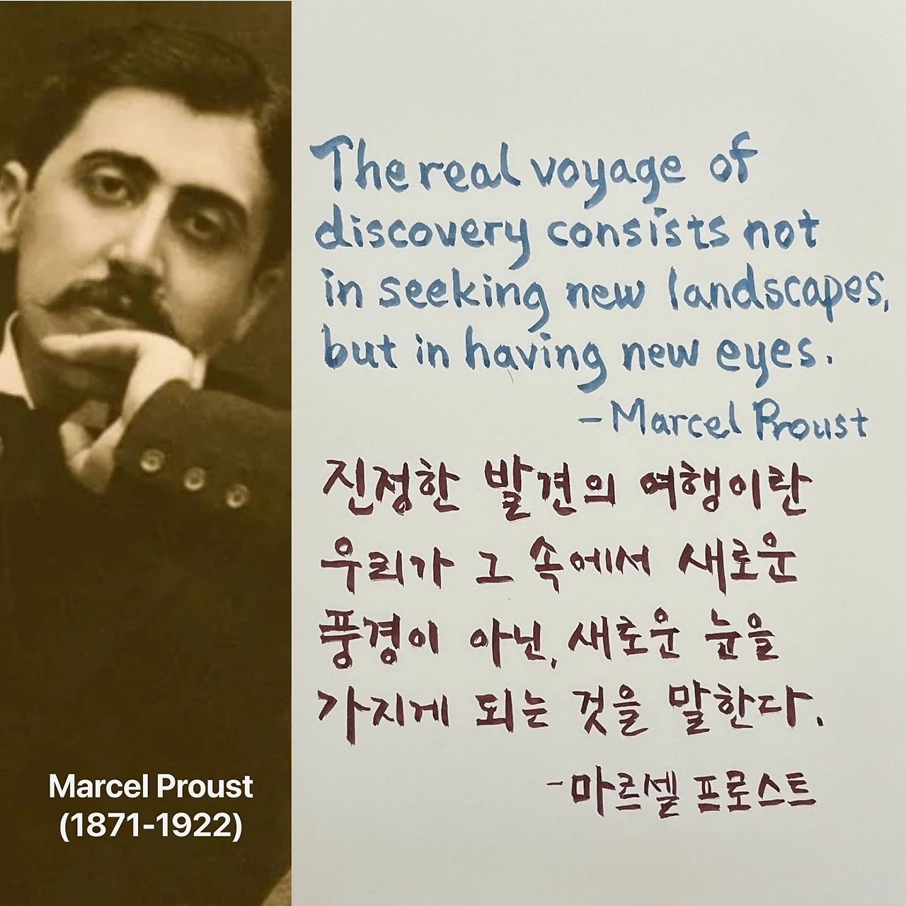 The real voyage of discovery consists not in seeking new landscapes, but in having new eyes. -Marcel Proust