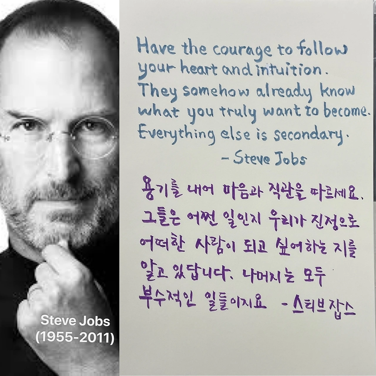 Have the courage to follow your heart and intuition. They somehow already know what you truly want to become. Everything else is secondary. -Steve Jobs