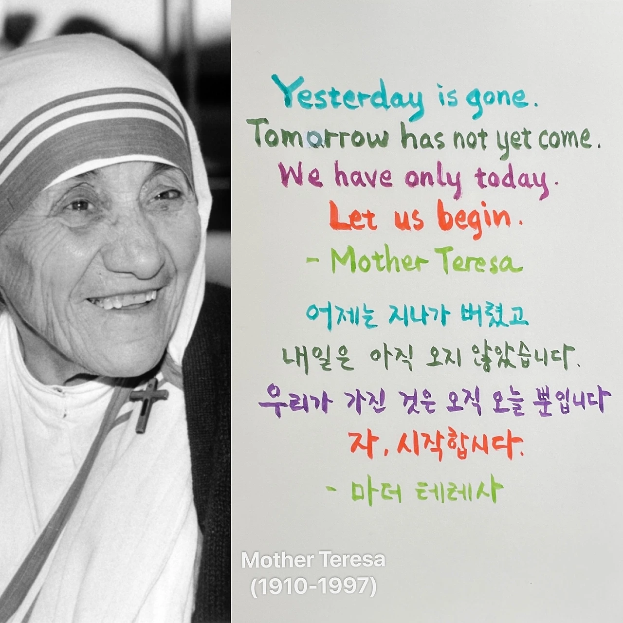 Yesterday is gone. Tomorrow has not yet come. We have only today. Let us begin. - Mother Teresa