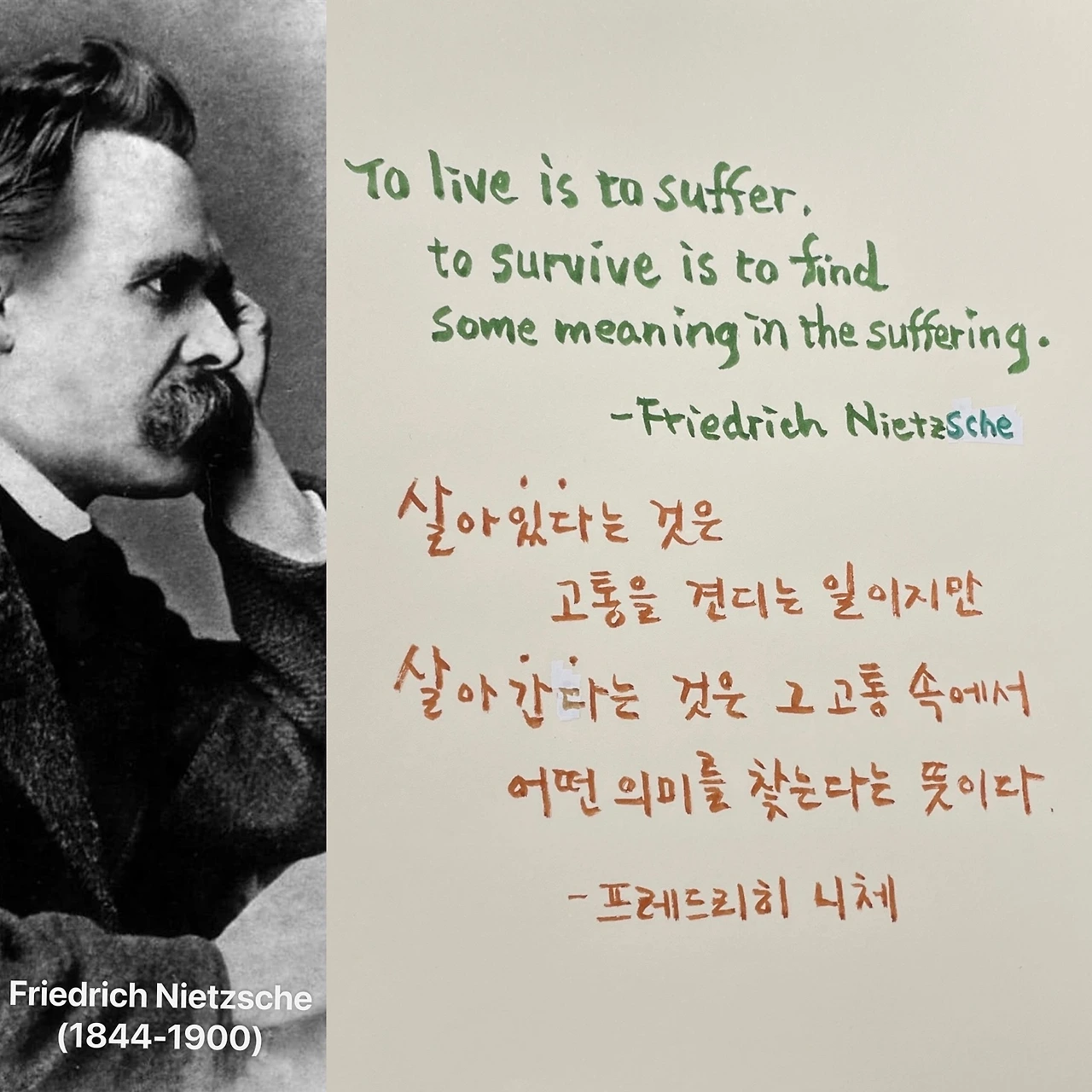 To live is to suffer, to survive is to find some meaning in the suffering. -Friedrich Nietzsche