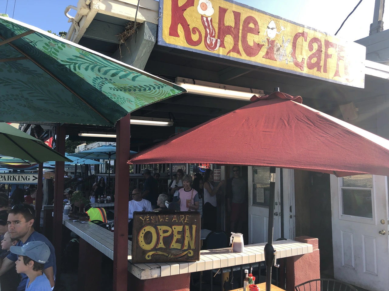 항상 푸드랜드로 장을 보러 가는 길에 보이는 kihei cafe에 들렀다. 가게 앞을 지나 갈 때마다 항상 사람들로 북적였는 데 막상 점심시간에 가니 오래 기다리지 않고 바로 주문을 할 수 있었다. 하와이안 햄버거, 팬케잌과 계란 후라이, 베이컨이 두 장씩 나오는 2-2-2, 그리고 BLT(베이컨, 레터스, 토마토가 들어간 센드위치)를 주문했다. 모두 맛있다. 문제는 가게 바닥을 돌아다니는 새들과 병아리 보다 더 자란 닭들이다. 새들이 발을 스치고 지나면 비둘기에 기겁을 하는 제수씨를 따라 수빈이도 덩달아 꺅 꺅 비명을 질렀다.