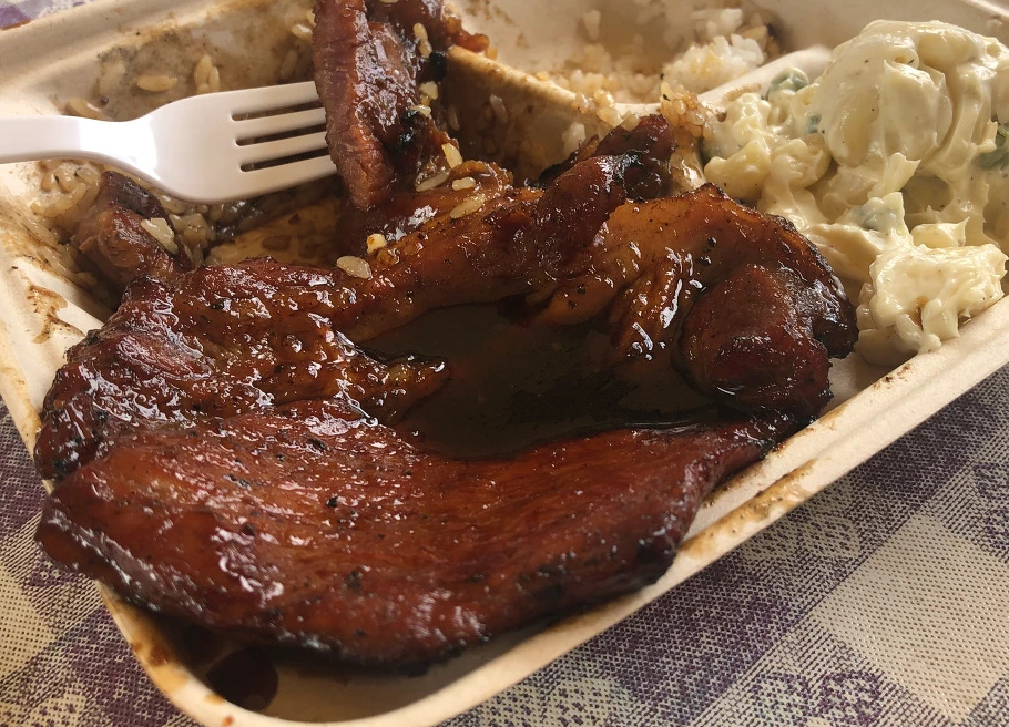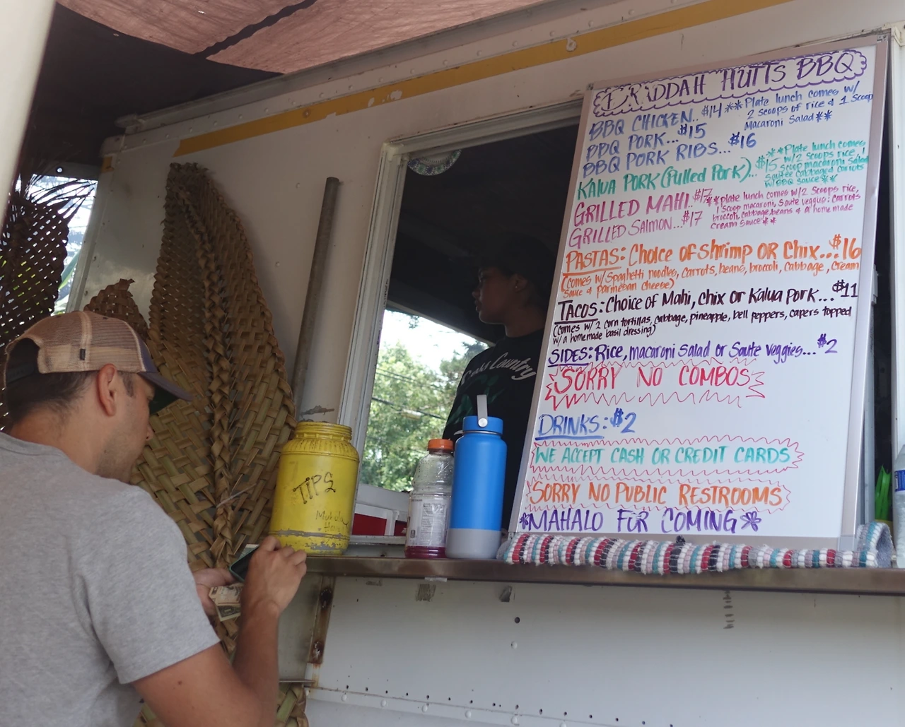 하나의 식당들은 대부분 푸드트럭에서 주문을 하고 텐트 밑에 펼쳐놓은 테이블에 가져다 먹는 스타일이다. 우리는 바베큐 식당을 찾아 가 BBQ 포크(Pork)와 BBQ 포크립(Pork Rip)을 주문했는 데, 둘 다 맛이 있었지만 그 중 BBQ 포크는 먹어 본 중 최고였다.
