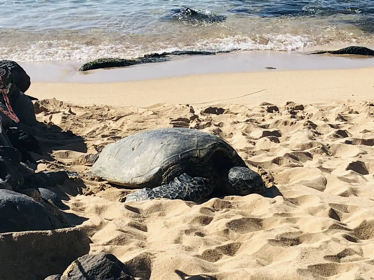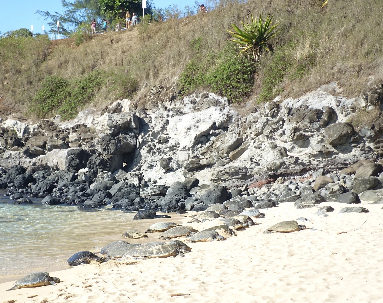 우리는 하나까지 온 긴 길을 돌아 나와 거북이가 모래 위로 나와 쉬는 호오키파 비치(Ho'okipa beach)에 들렀다. 거북이가 떼로 나와 일광욕을 즐기고 있었다. 거북이들이 일광욕을 하는 해변은 사람들이 들어 갈 수 없도록 보호선으로 둘러져 있는 데 거북이들은 그 주위를 둘러 싼 사람들이 전혀 신경 쓰이지 않는 모양이다. 어느날 거북이들이 사람들이 자신들의 일광욕을 방해하자 하와이 주정부에 탄원을 내어 이 해변 만큼은 마음 놓고 일광욕을 할 수 있게끔 보호선을 쳐 달라고 요청했을지도 모를 일이다. 주 정부와의 담판에 나선 거북이 대표는 어떤 거북이였을까. 거북이는 오래 사는 동물이니 거북이의 대표로 뽑혔다면 아마 몇 백살은 되었을 거다. 주정부 입장에서도 감히 몇 백살을 먹은 시니어의 의견을 못들은 척 할 수는 없지 않은가.