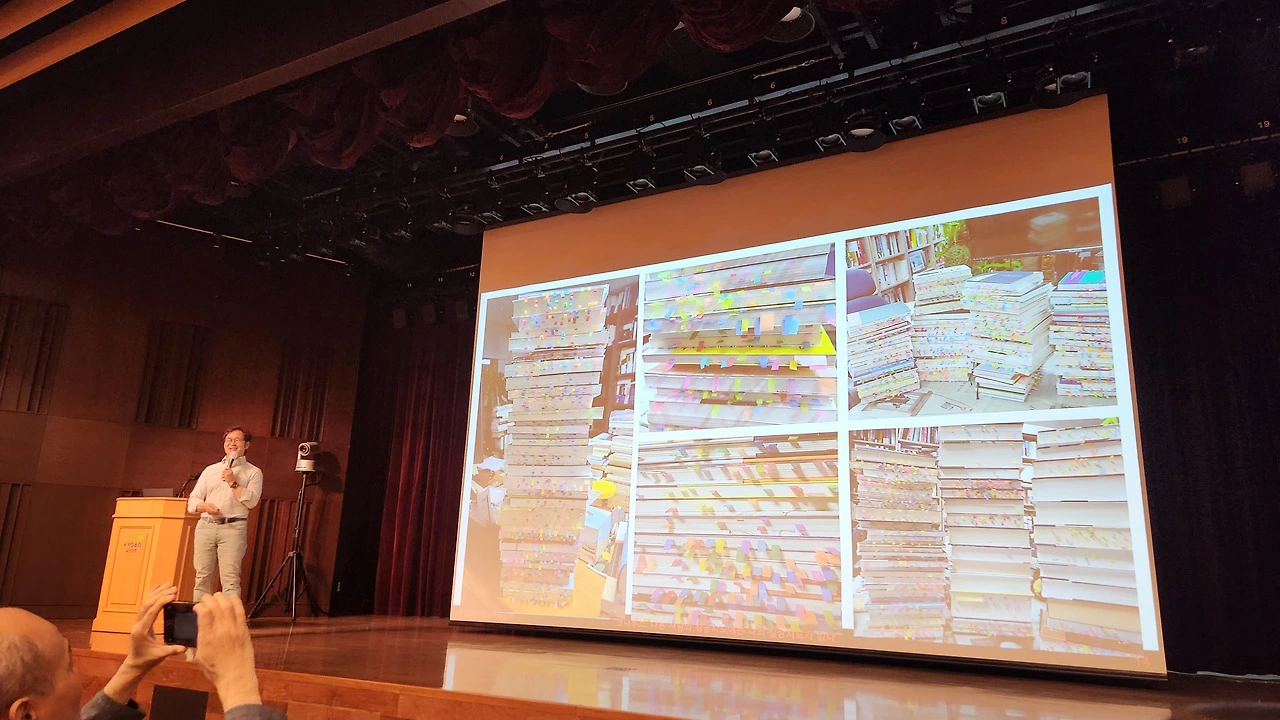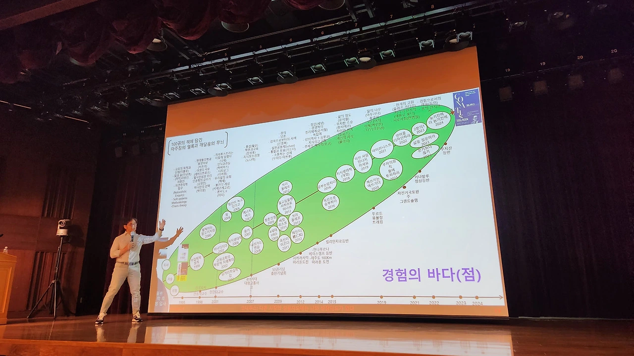 유영만 교수는 자신의 인생 이야기로 강의를 시작했다. 특히 용접공에서 출발하여 교수가 되고 또 여러 가지 도전을 하며 지나온 삶의 굴곡을 이야기하였다. 그는 그러한 경험들 하나하나를 책으로 남겼다. 이번에 나온 <코나투스>는 그의 100번째 책이다.