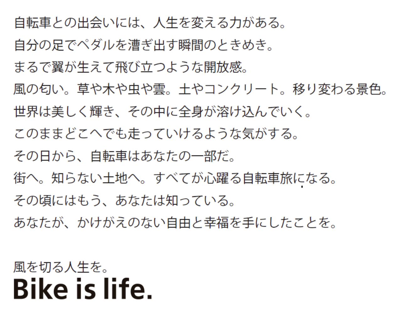 몇 해전 후쿠오카에서 텔레비전을 보는 데 우연히 다이고로의 얼굴이 화면에 나왔다. 그는 자전거를 가르치는 자전거 스쿨과 자전거 렌털 사업 등을 운영하는 회사의 대표가 되어 있었다. 놀랍고 반가웠다. 그는 프로젝트에서 나왔던 아이디어를 살려 후쿠오카시와 투자사의 투자를 받았다고 한다. 이후 그는 규슈의 도시에 자전거 코스를 개발하고 자전거와 관련된 여러 사업을 진행하고 있다. 회사 이름은 바이크이즈라이프. 오랜만에 본 그는 여전히 자전거에 미쳐있었고 자전거와 하나가 되어 살아가고 있었다.