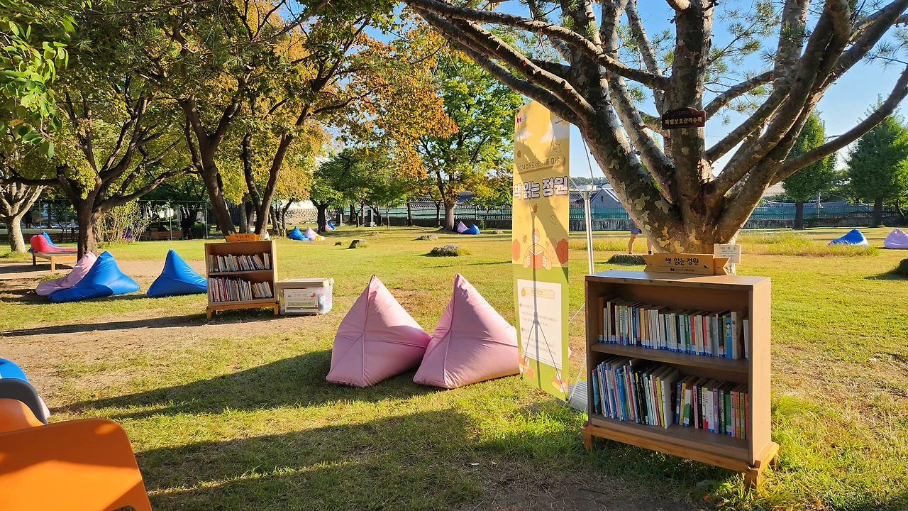 언덕을 올라 자리한 정독도서관 앞에는 넓은 정원이 있다. 너른 잔디밭에는 올해부터 '책 읽는 정원'이란 이름으로 편하게 누워서 책을 읽을 수 있는 의자들과 책장을 비치하였다. 날씨가 좋은 날이면 가족과 커플들이 찾아와 평화로운 시간을 즐긴다.