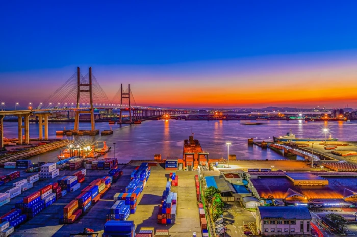 평택항에서 선적하고 하역하던 컨테이너의 영상이