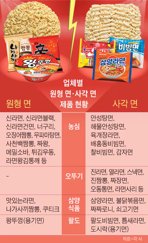 (참고 4) '원형'면과 '사각'면의 라면 분류