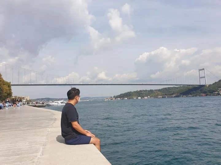 첨부된 사진은 보스포러스 해협에 앉아 있는 제 모습입니다. 제가 앉은 쪽이 유럽 끝자락이고 건너편은 아시아 지역입니다. 이스탄불은 한 도시 안에 두 대륙(유럽과 아시아)이 공존하는 세계에서 유일한, 정말 특이한 도시입니다.